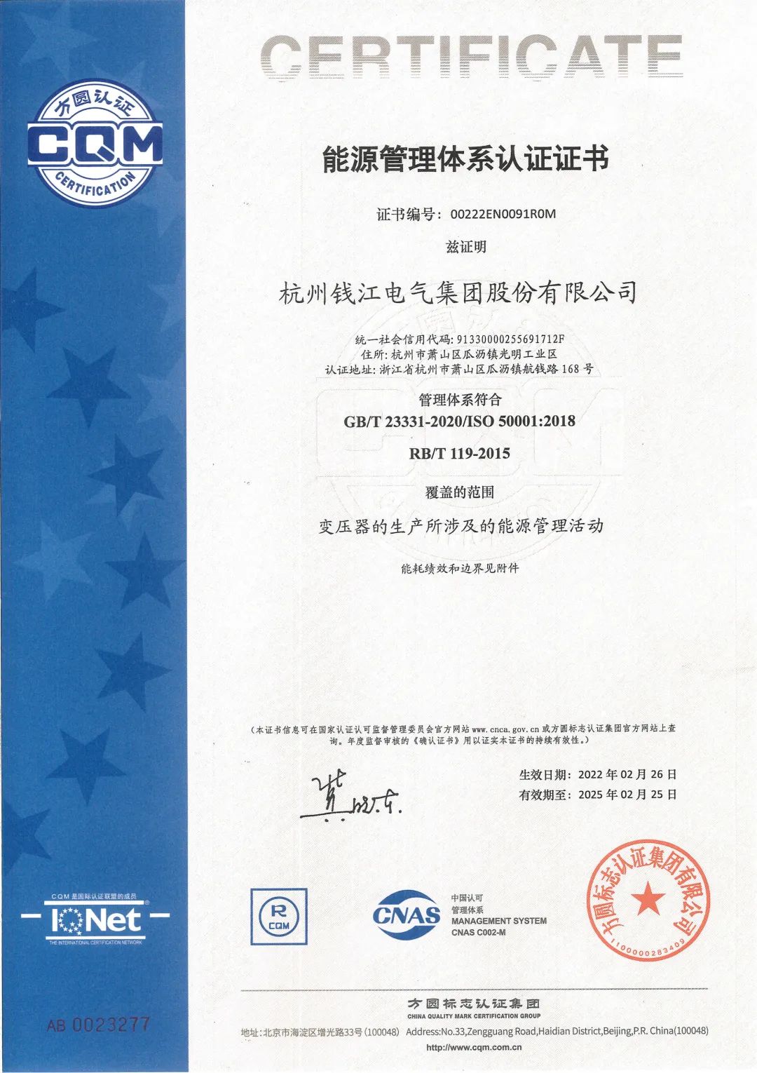 錢江電氣通過(guò)能源管理體系認(rèn)證