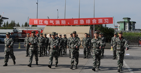 11月9日,集團人武部組織特種電力設備維修排民兵,在新廠區進行隊列訓練和消防安全應急演練。